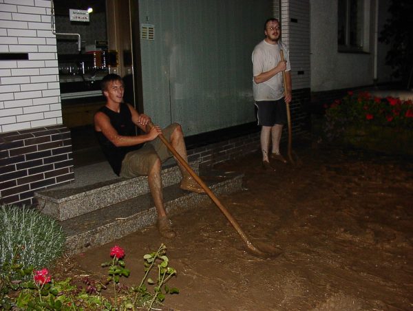 Am späten Abend des 22. August 2002 wird das Germeter Unterdorf von einer Hochwasserwelle erfasst. Starkregen, der binnen einer Stunde fällt, bahnt sich seinen Weg über die gerade abgeernteten Felder und dann durch den Ort. Vor allem aus dem Mühlenwinkel fließt das Wasser heran.