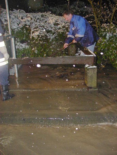 Im Gegensatz zum Hochwasser 2002 enthält die Brühe diesmal aber weniger Erde, so dass die Reinigungsarbeiten diesmal schneller ablaufen. Ärgerlich für die Anlieger ist die Sache allemal. Ortsvorsteher Willi Vonde drängt nun bei der Stadt auf eine Lösung des Problems. So sollen mehr Einläufe in den bach gebaut und eine Renaturierung des Baches geprüft werden.