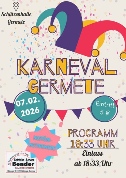 Nach dem Karnevalsauftakt am Samstag für die Erwachsenen ist in Germete noch nicht Schluss mit dem närrischen Treiben. Der Schützenverein weist bereits auch den Kinderkarneval hin, der eine Woche später, am Samstag, 14. Februar 2026, in der Halle stattfindet. Einlass ist hier um 14 Uhr. Zunächst gibt es Kaffee und Kuchen, ab 15 Uhr starten die jungen Narren ihr Programm, das von Sabrina Vonde organisiert wird.