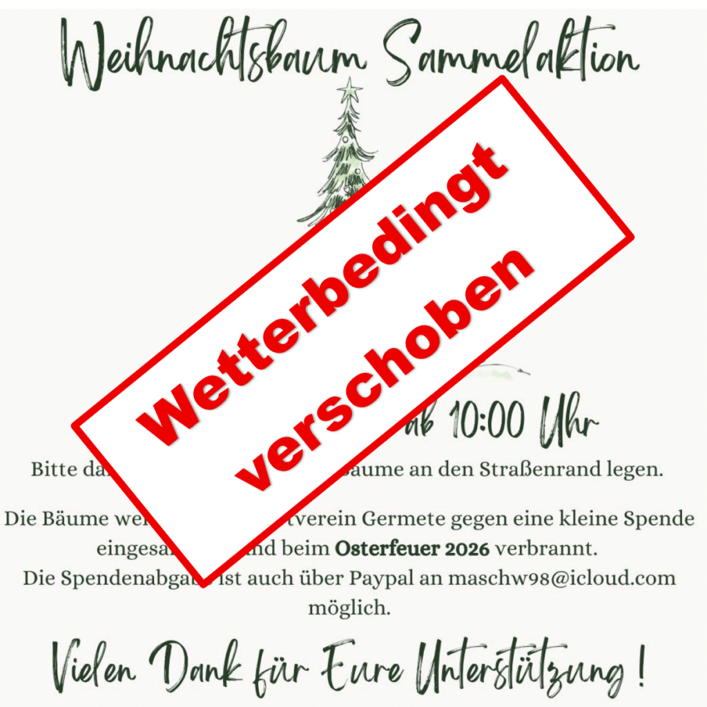 Aufgrund der aktuellen Wettersituation und der Vorhersage für das kommende Wochenende wird das Einsammeln der Weihnachtsbäume verschoben.